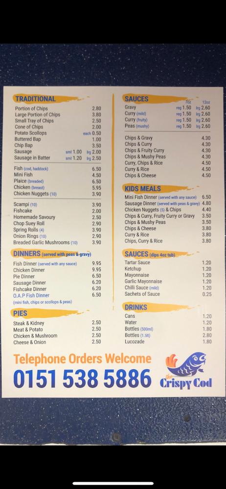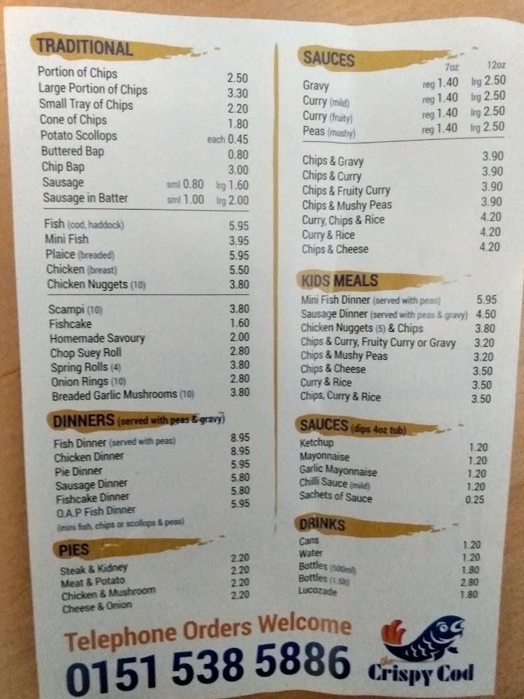 The Crispy Cod caters to anyone craving a quick bite or a leisurely meal, with amenities ranging from takeaway options to a kids' menu tailored for younger diners. The establishment is truly about community, providing a welcoming environment where everyone can enjoy hearty meals made from the freshest ingredients.